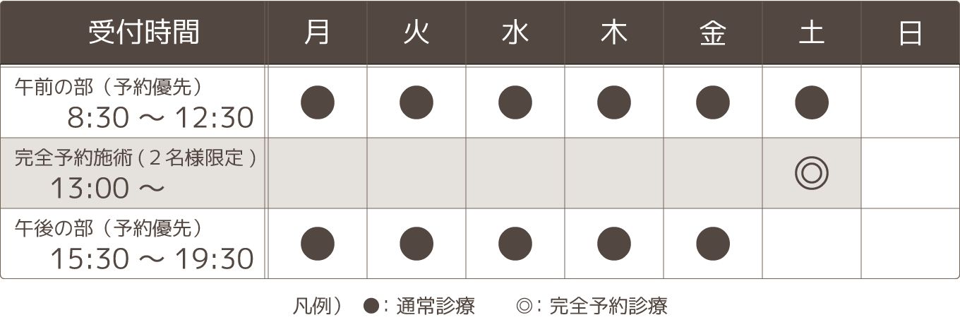 午後診療: 午後 15:30 ~ 午後19:30 - 土曜